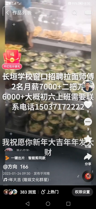长垣市招聘拉面师傅两名,工资待遇7000+,招聘学徒工...